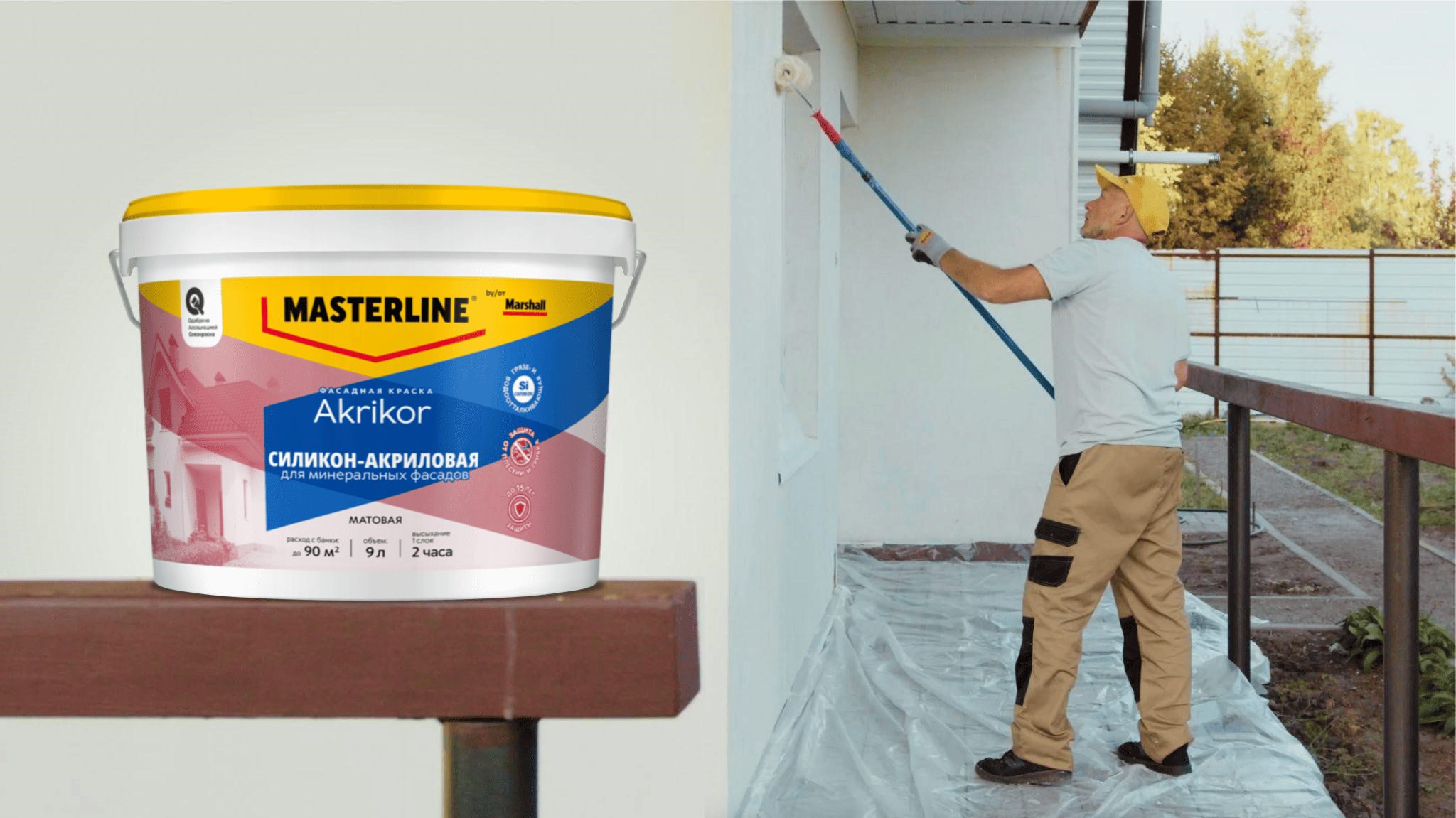- Декоративные достоинства. Красивый и ухоженный фасад — визитная карточка здания. Поэтому при выборе краски для фасада дома стоит учитывать и ее эстетическую составляющую. К примеру, краска Masterline Akrikor Силикон-акриловая сохраняет привлекательный вид фасада в течение 15 лет.